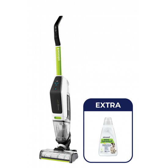 De veelzijdige BISSELL® CrossWave® HydroSteam™ Pet Select multi-oppervlaktereiniger is ontworpen voor huishoudens met huisdieren. Het stofzuigt, dweilt en droogt in één keer, en heeft bovendien een optionele stoommodus voor ultieme schoonmaakresultaten. De kracht van de HydroSteam™-technologie pakt hardnekkige, plakkerige vlekken aan. Deze alles-in-één reiniger voor meerdere oppervlakken met onbeperkte stroomvoorzieining is ideaal en veilig voor het reinigen van alle harde vloeren. Het verfrist zelfs uw vloerkleden. Het is voorzien van LED-koplampen aan de voet om moeilijk zichtbaar huisdierhaar, stof en vuil te verlichten. De Tangle-Free-technologie minimaliseert het inwikkelen van haren rond de borstelrol.