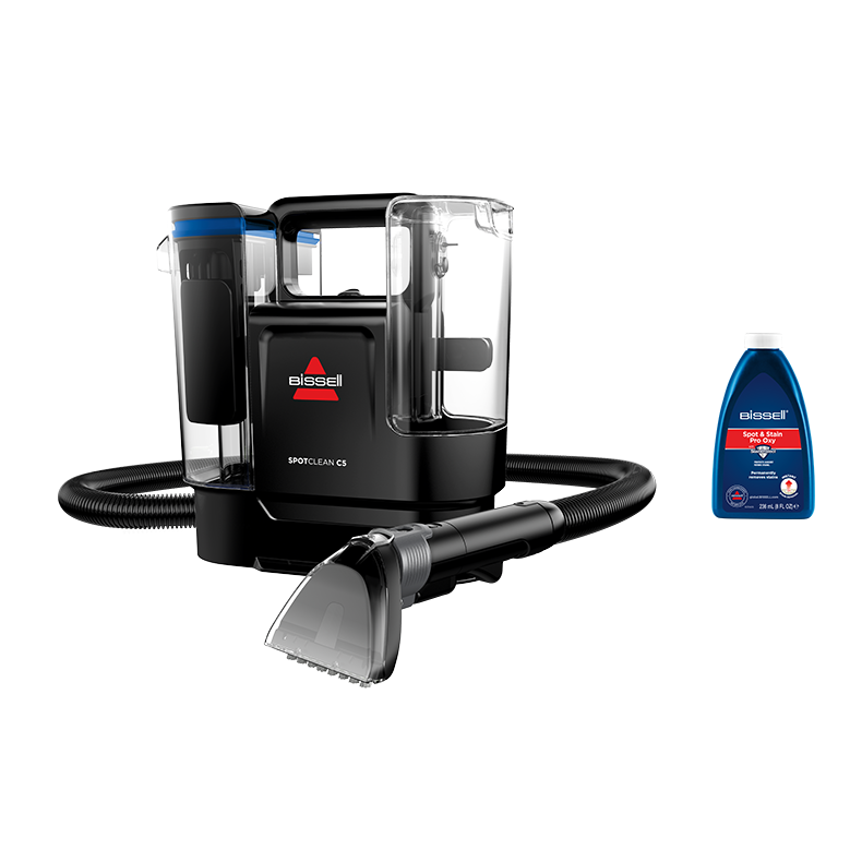 Maak kennis met de BISSELL® SpotClean® C5 Select – het krachtige hulpmiddel voor het eenvoudig verwijderen van hardnekkig vuil. Deze compacte vlekkenreiniger heeft een superieur zuigvermogen en verwijdert vuil en vlekken uit stoffering, tapijten en autobekleding. Dankzij het innovatieve Triple Action reinigingssysteem geschikt voor het grondig en efficiënt reinigen van verschillende oppervlakken. Met de extra lange slang van 1,7 m en het 10 cm accessoire voor hardnekkige vlekken met ingebouwde HydroRinse bereikt u altijd zelfs de lastigste plekken, met gemakkelijke nareiniging. De SpotClean® C5 Select is dankzij het lichtgewichte en compacte ontwerp gemakkelijk in het gebruik en eenvoudig op te bergen.